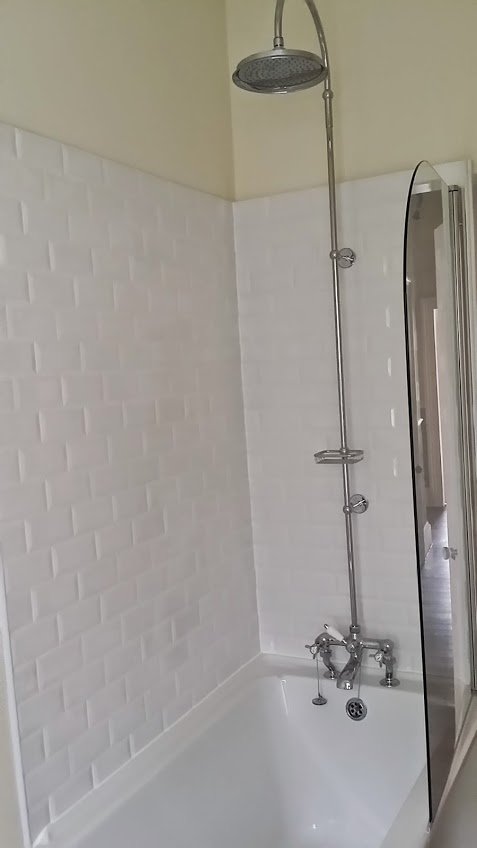 First, the existing sanitaryware and tiling were fully removed. We installed a robust waterproofing membrane to safeguard the walls and floor. Plumbing enhancements included repositioning the shower and bath valves, installing a new bath mixer, and adding a designer heated towel rail connected to the central boiler. Our Gas Safe-certified engineers ensured all gas-related adjustments adhered to current regulations. Electrical upgrades by our NICEIC-registered team introduced recessed LED downlights, ambient mirror lighting, and a quiet extractor fan—all on dedicated circuits for optimal safety. Custom joinery featured a traditional vanity with wood panelling, painted to suit the Georgian aesthetic, and integrated shelving to discreetly store essentials. Every element was chosen to blend modern convenience with New Town’s architectural dignity.